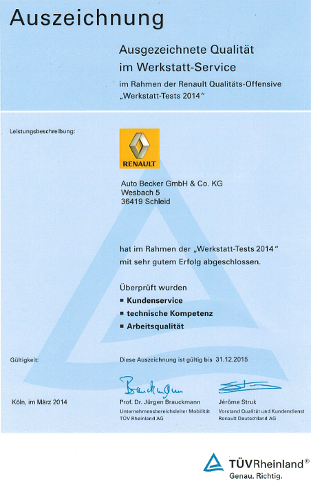 Wir freuen uns durch die positive Bewertung unserer Kunden, deVerdana, Arial;n Titel "Werkstatt des Vertrauens 2014"